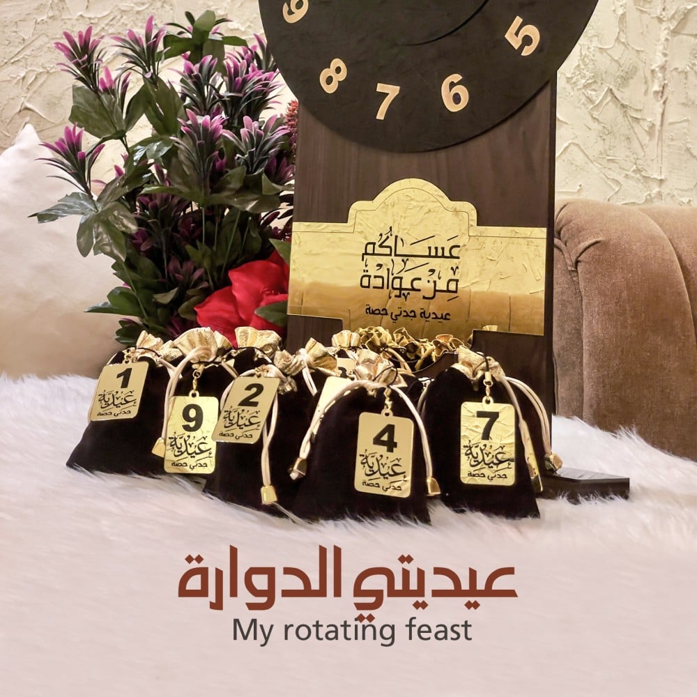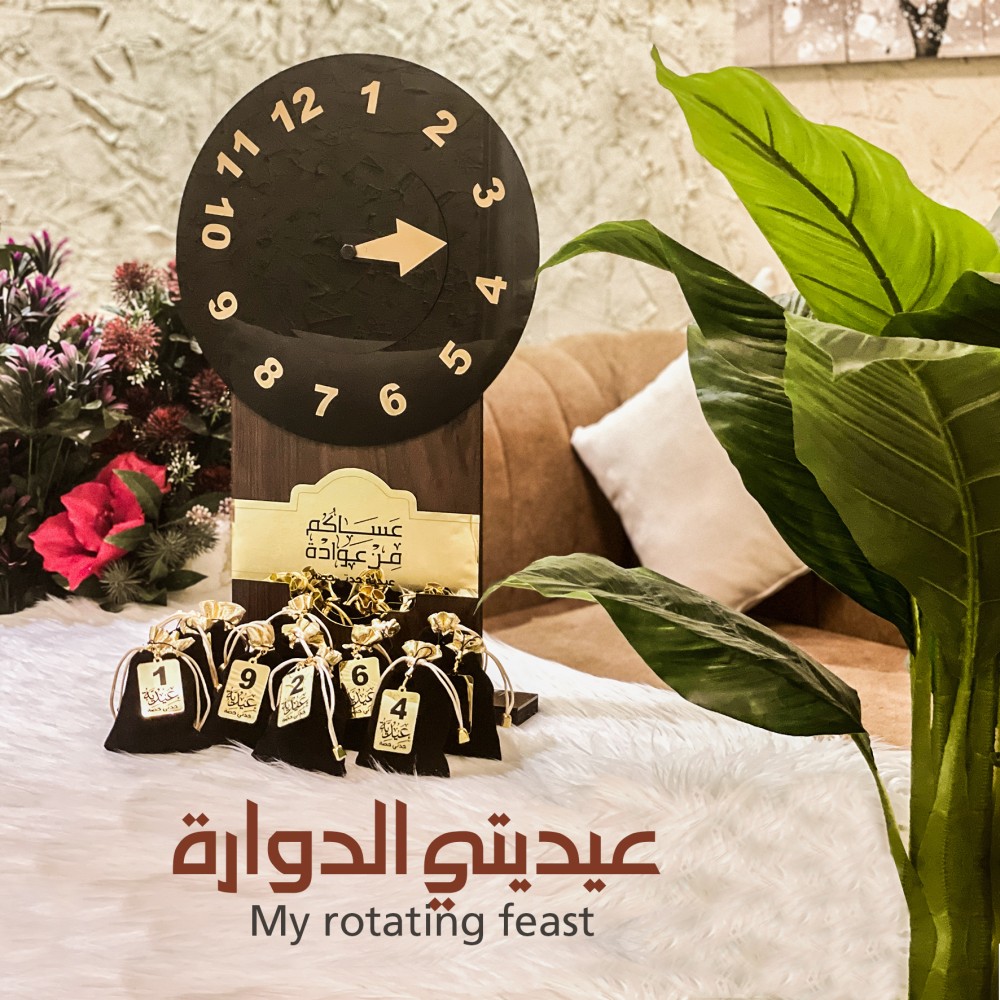 منتج مميز يميز من يقتنيه لفكرته وجماله ، صُنع من الخشب وَ الأكرلك الأسود ، يُمكن إضافة تهنئتك الخاصة لِيُضفي لمسة جمالية ، يأتي معه 12 كيس كل كيس مرقم يحتوي على مرايا باسم المهدي .. المقاسات : الطول 6...
