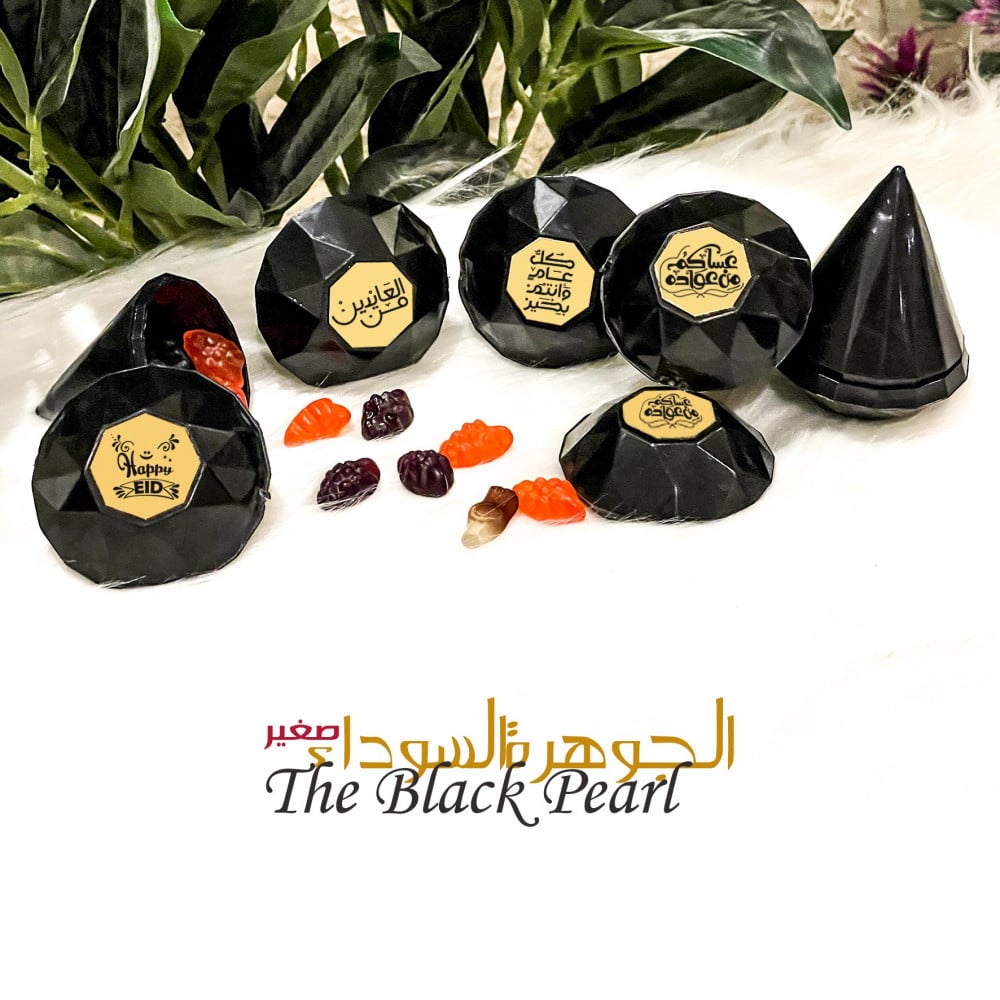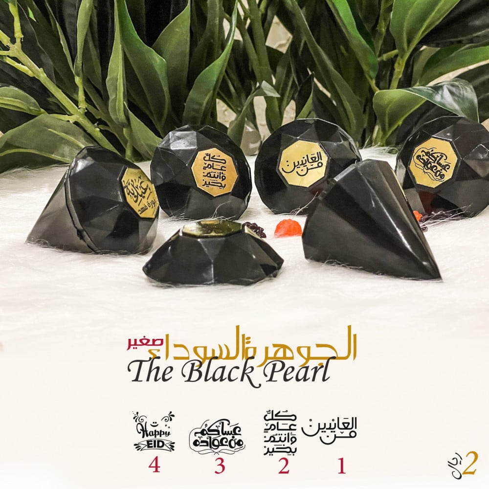 جوهرة ميني فارغه لتعبئة ، باللون الأسود المميز ، مزينه بالمرايا الذهبية بعبارة العيد ، تُباع بدون تعبئة .