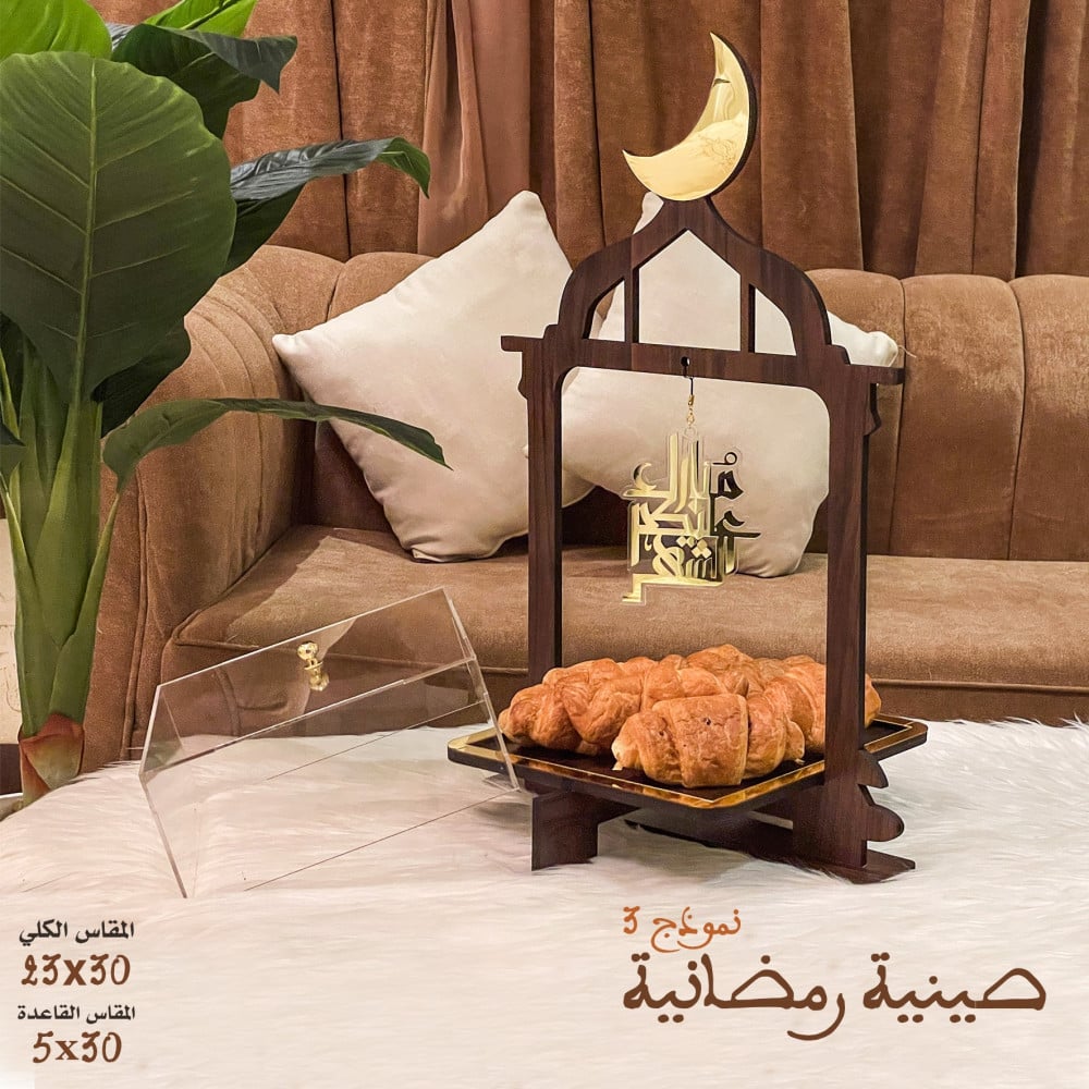 Read Moreصينية بعبارة ( مبارك عليكم الشهر ) بتصميم رمضاني فريد ومميز ، صنعت من الخشب وزينت بالمرايا الذهبية مع إضافة غطاء من الأكرلك الشفاف بمسكه .. المقاسات :